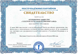 Завод «Электрокабель» включен в негосударственный Реестр российских юридических лиц, финансово‑экономическое состояние которых свидетельствует об их надежности как партнеров для предпринимательской деятельности в Российской Федерации и за рубежом